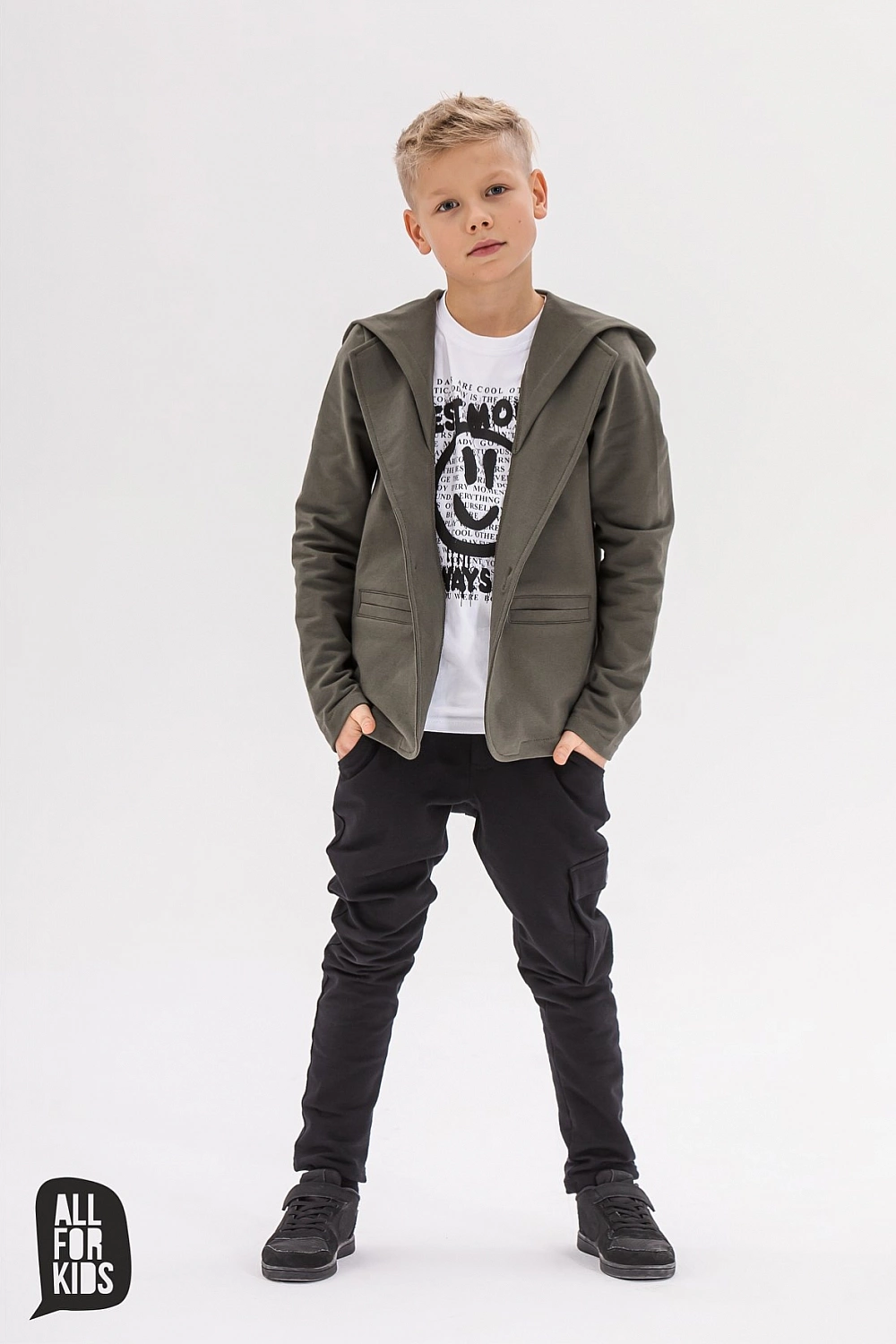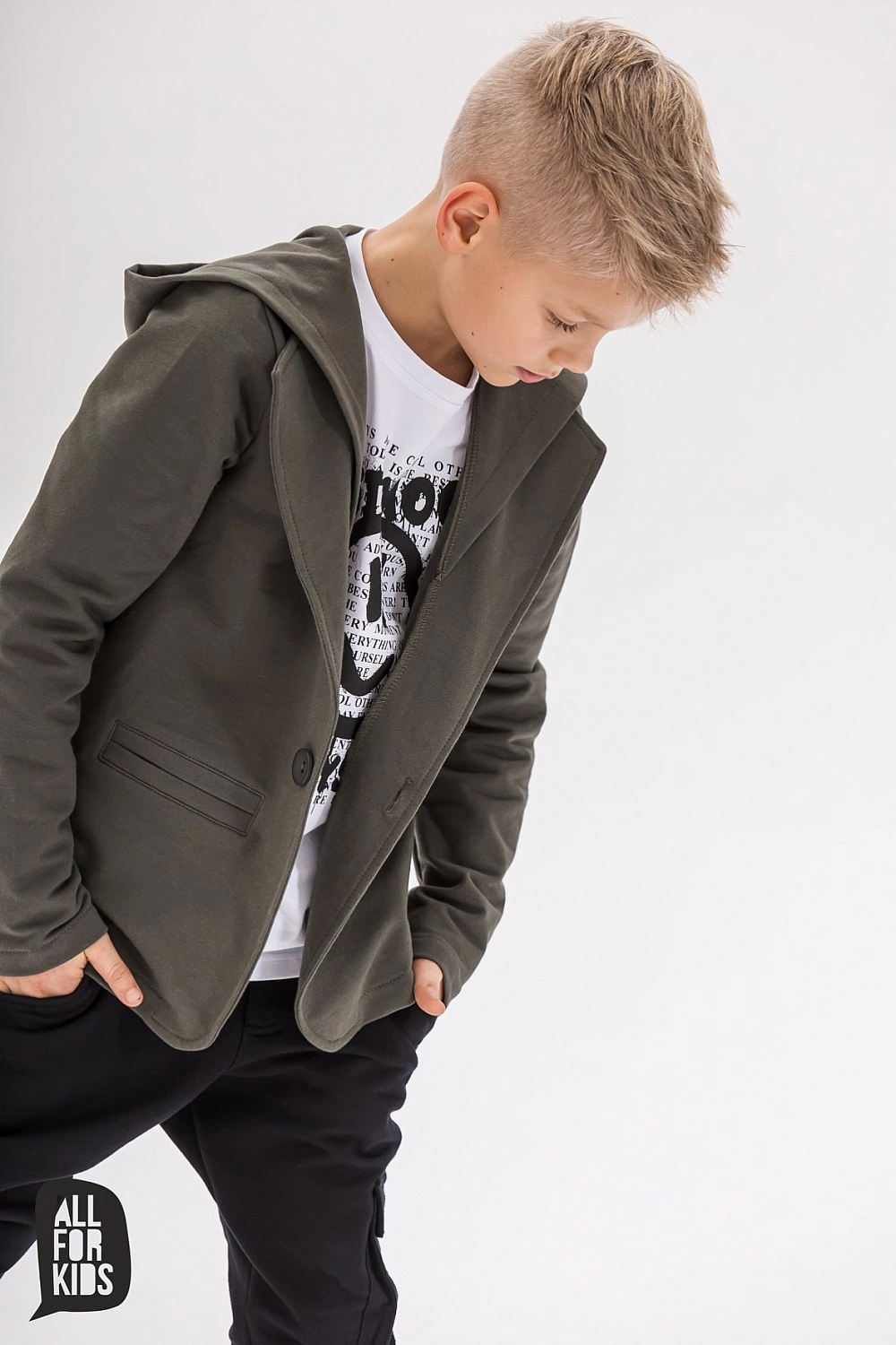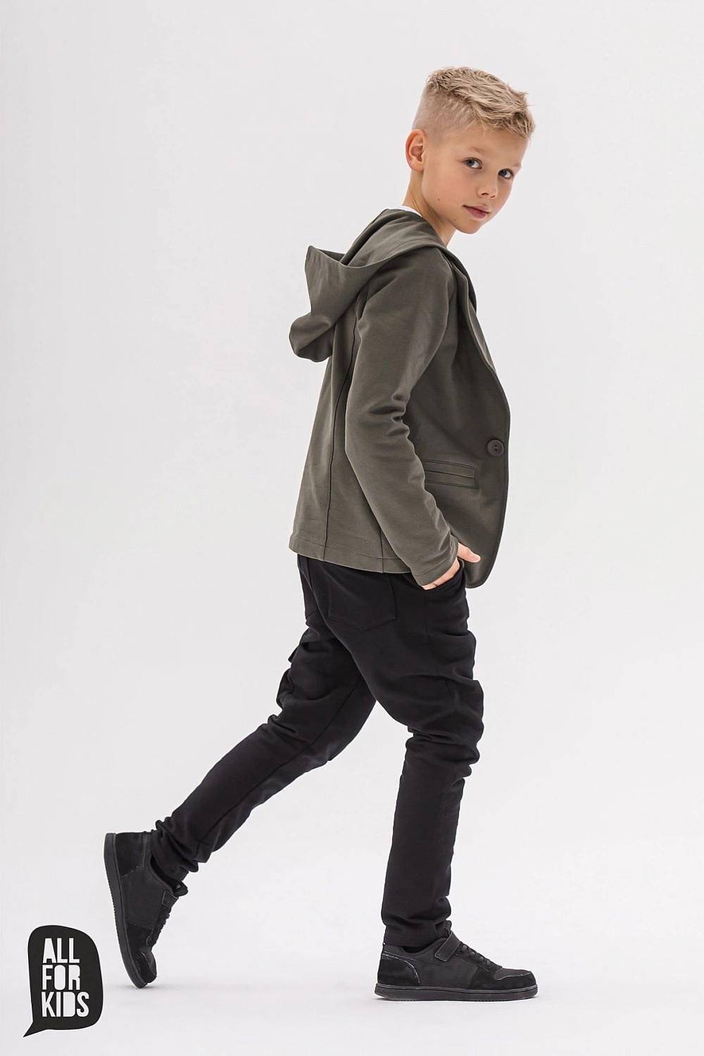 Športové sako s kapucňou so zapínaním na gombíky.