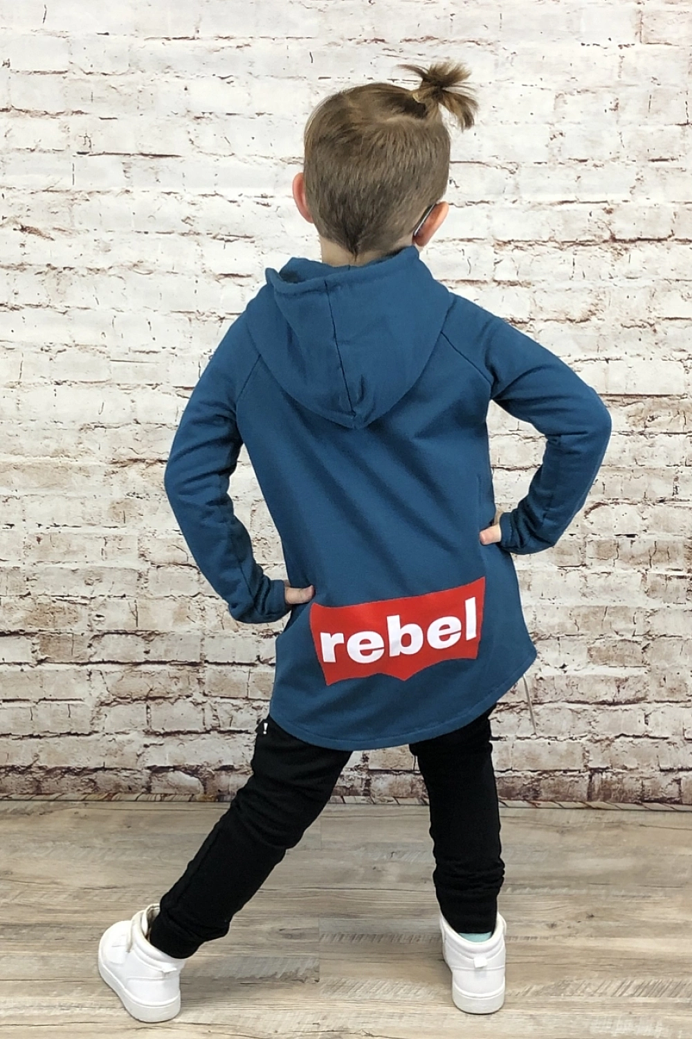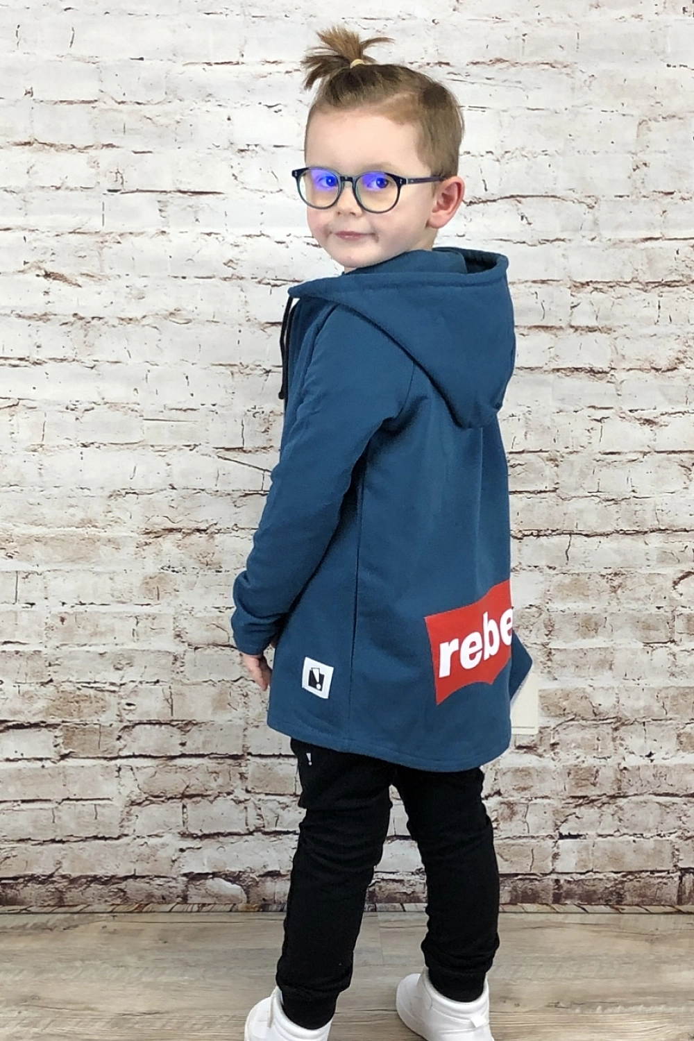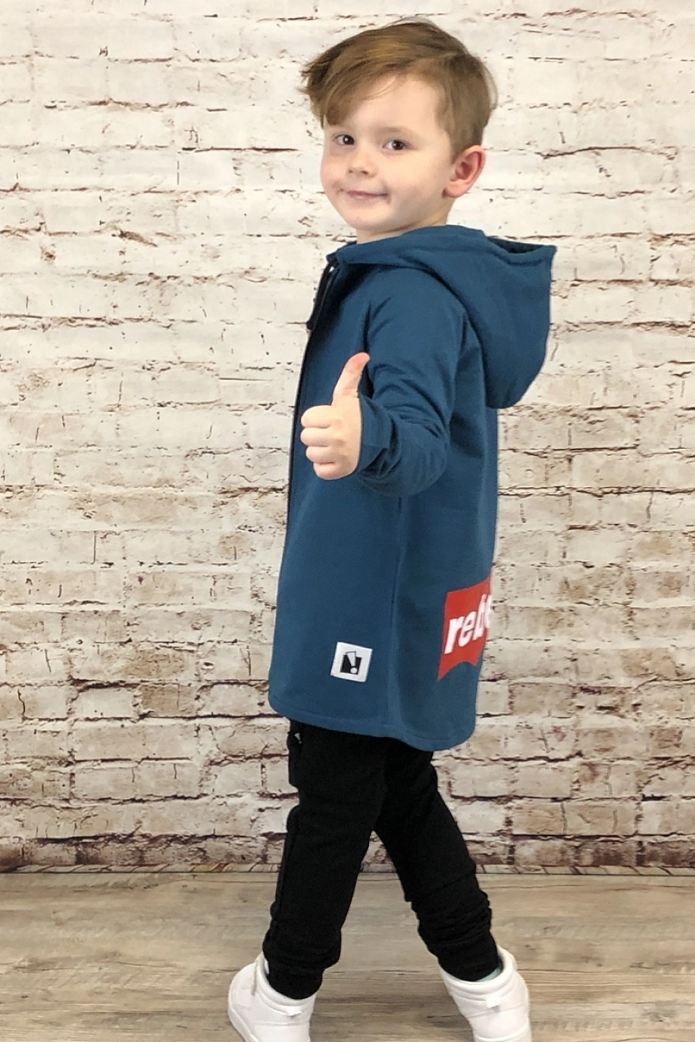 Štýlová, predĺžená mikina s kapucňou, zapínaním na zips a potlačou vzadu - mierne zateplená.