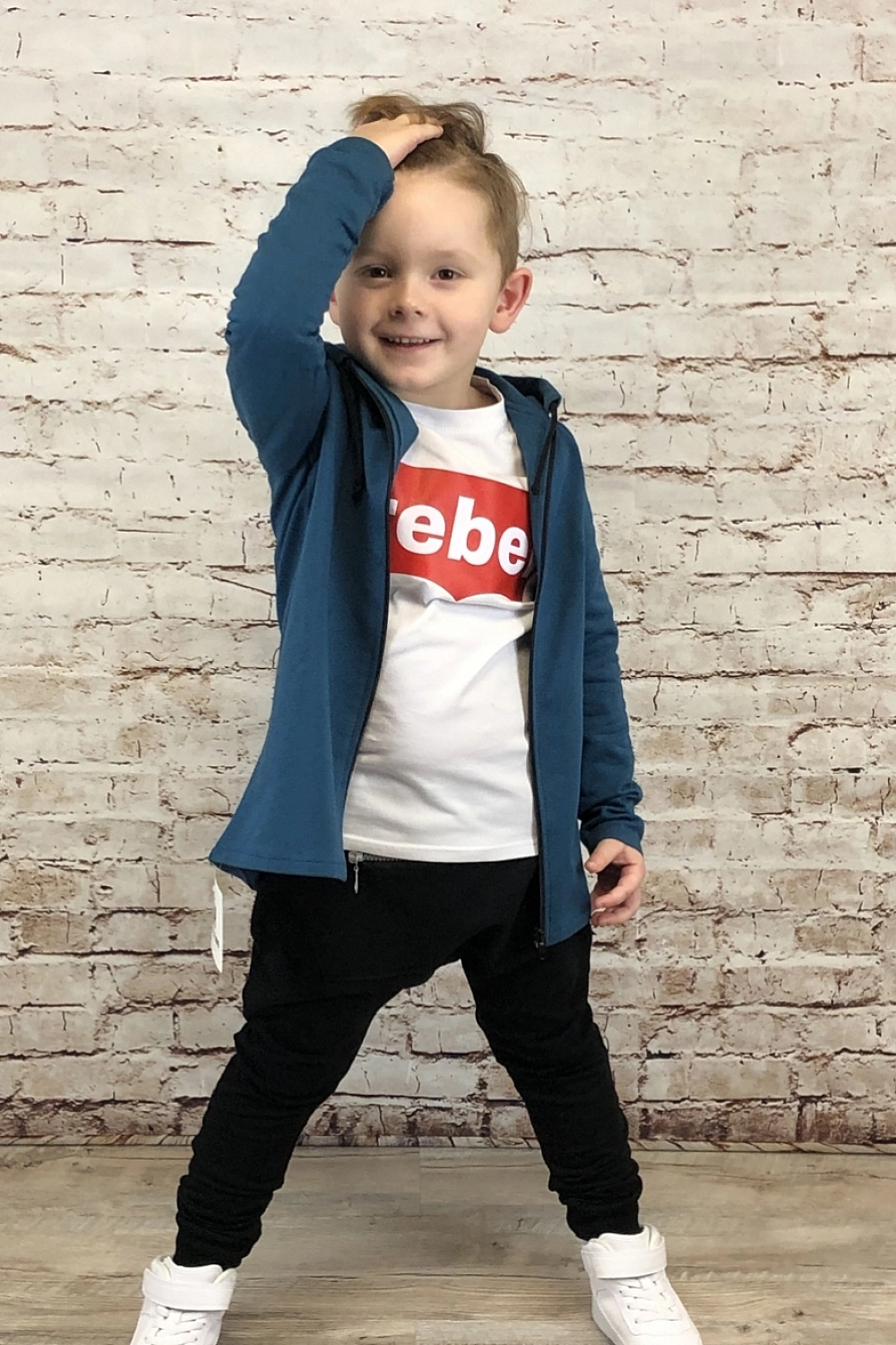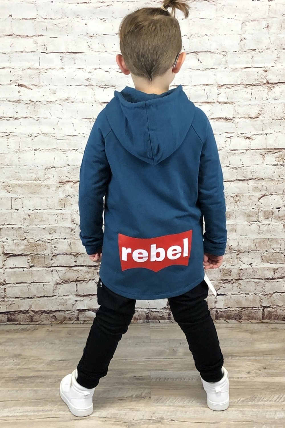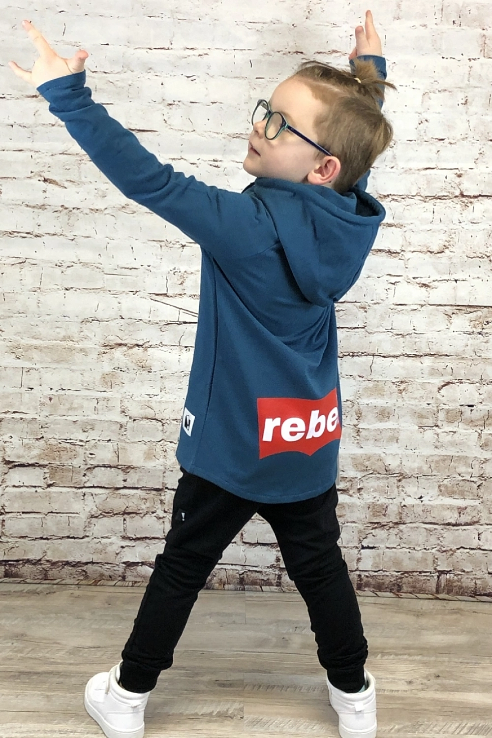 Štýlová, predĺžená mikina s kapucňou, zapínaním na zips a potlačou vzadu - mierne zateplená.